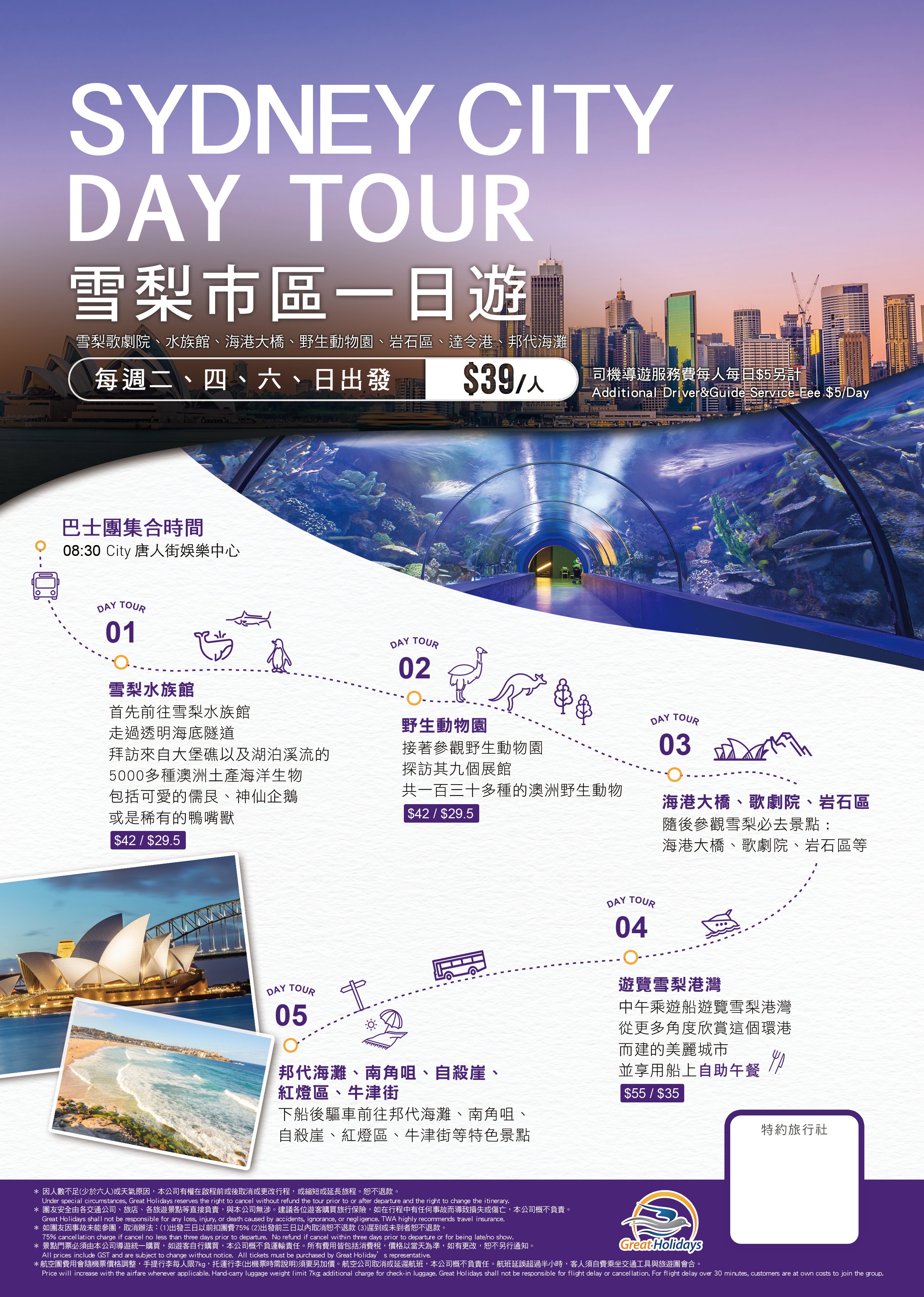 澳洲旅遊位於澳洲雪梨,專注於亞洲市場,提供完善的飯店、機票、餐點及行程規劃。透過全新規劃的海報文宣視覺,推廣豐富的澳洲旅遊行程。藉由優質的澳洲景點照片、輕插畫風格,跳脫傳統旅遊海報的視覺風格。 設計作品展示